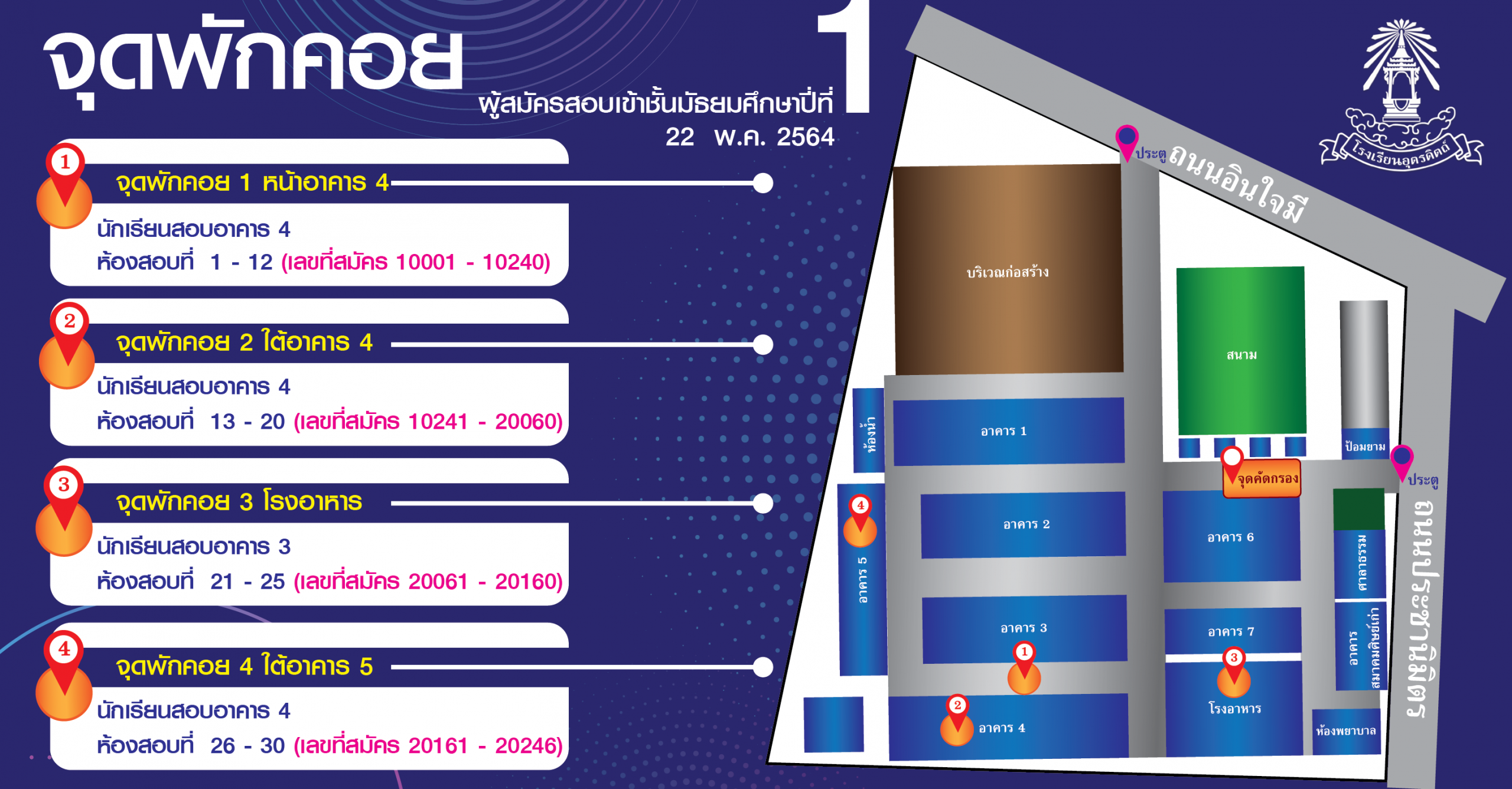 ประกาศรายชื่อนักเรียนอันดับสำรองที่ได้รับสิทธิ์เข้าศึกษาต่อชั้นมัธยมศึกษาปีที่ ๑ ปีการศึกษา ๒๕๖๔ ประเภทนักเรียนทั่วไป